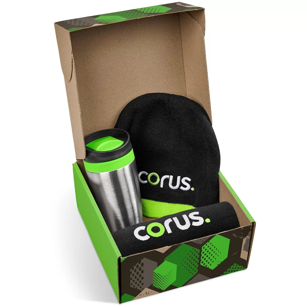 Boost brand visibility this winter with the Callan Gift Set, featuring a beanie, scarf, and tumbler. Customizable and ideal for staying cozy in style.