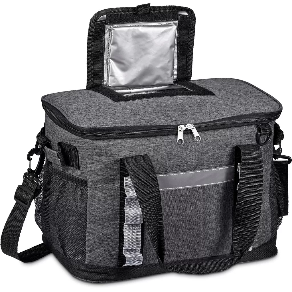 The Glacier 24-Can Cooler Bag combines style and functionality, featuring durable two-tone fabric, easy-access flap, and ample branding space—perfect for promoting your brand.