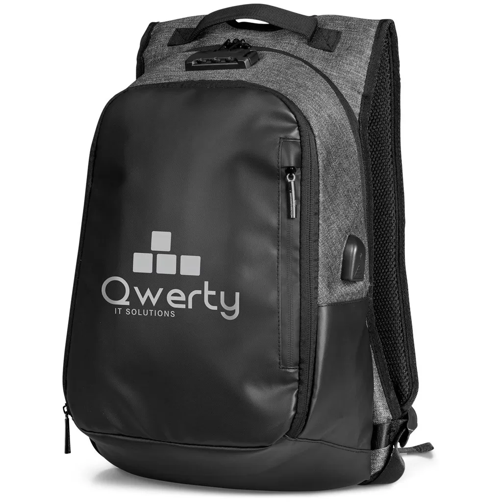 Enhance your brand’s visibility with the Pentagon Anti-Theft Laptop Backpack, designed for safety and style. This competitively priced backpack features a striking PU front panel that boldly showcases your logo, ensuring your brand stands out. Equipped with a convenient USB charging port, it allows users to power their devices on the go. The TSA lock offers an added layer of security, while a concealed back zippered pocket keeps valuables safe. Crafted from durable two-tone 600D and PU materials, this high-fashion bag also includes a padded back panel for ultimate comfort. Promote a blend of functionality and brand sophistication with this essential accessory.