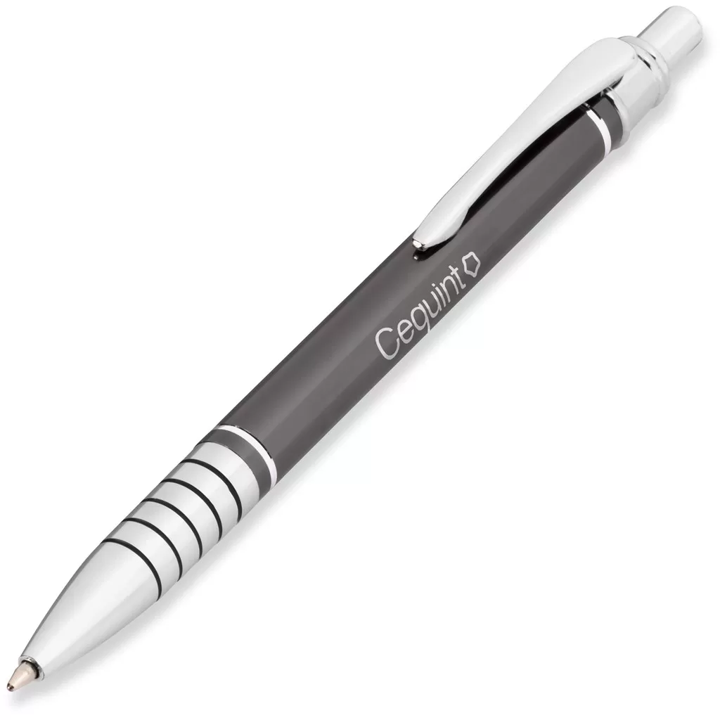 An elegant executive pen, anodised aluminum barrel, metal clip, polished chrome tip & trim with black German ink. Available in Black, Blue, Gun Metal, White.