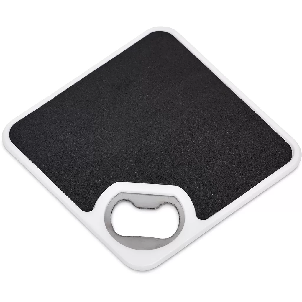 Sela Recycled Plastic Bottle Opener Coaster: Eco-friendly bottle opener and coaster in one, made from recycled materials. Ideal for brand promotion.