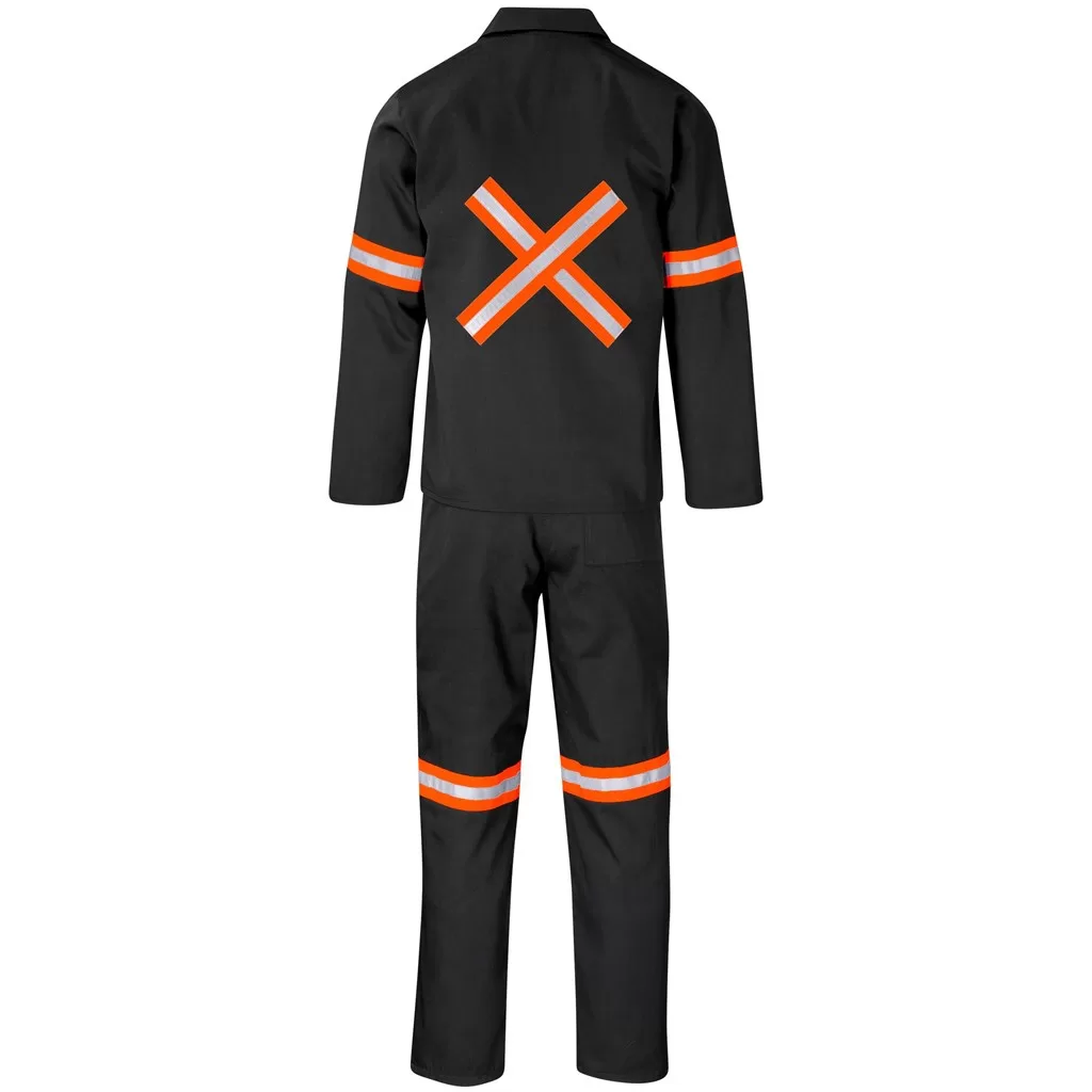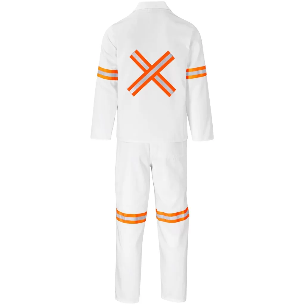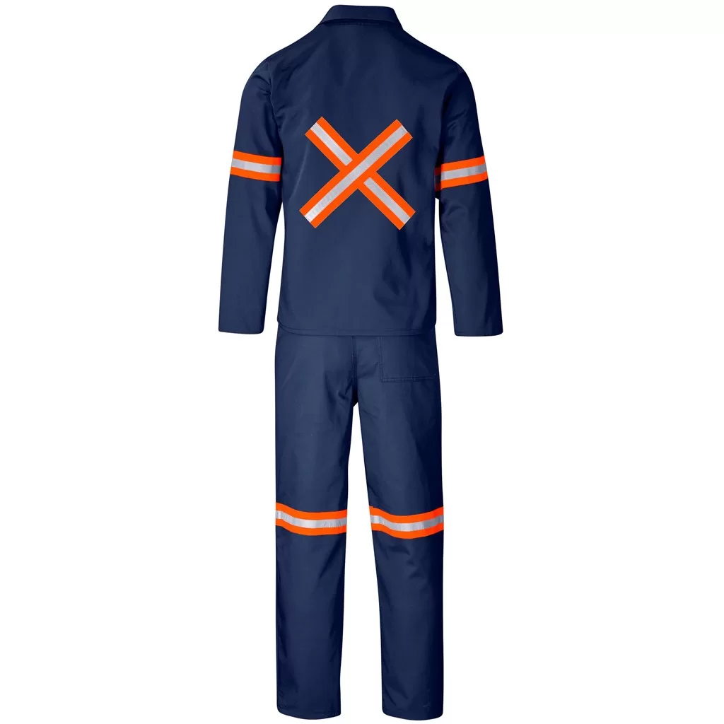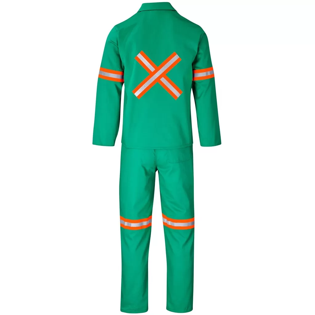 Orange-taped Conti Suit: 190g/m² polycotton, reflective on arms, legs, and back. SABS-approved for industrial work environments.